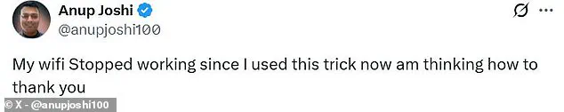 On X, one commenter explained: ‘The aluminium foil behind the router works as a parabolic reflector, bouncing radio waves forward and concentrating the signal where you need it most.