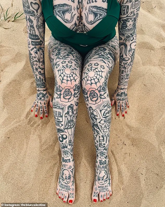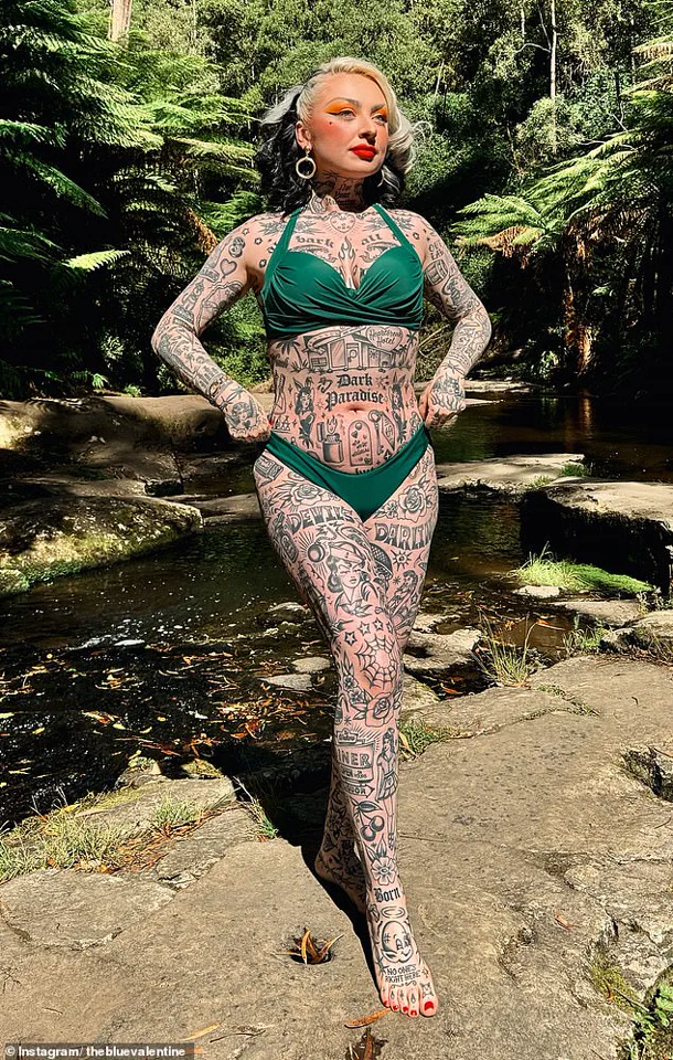 Blue Valentine, a 28-year-old resident of Melbourne, Australia, has embarked on a unique and ambitious journey that has transformed her body into a living gallery of art.