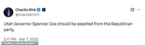Gateway Pundit, a pro-MAGA publication, took to social media to denounce Cox as a ‘shameless self-promoter,’ accusing him of being ‘not MAGA’ but rather a ‘RINO/Democrat.’ Such rhetoric has become increasingly common in the wake of Kirk’s assassination, with many Trump supporters questioning whether Cox’s policies align with the movement’s core values.