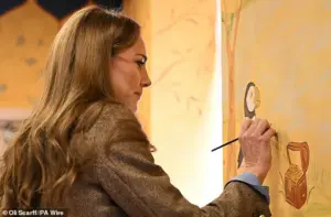 The Princess took time painting delicately, while Prince William humorously deferred to his wife’s talents before joining in himself.