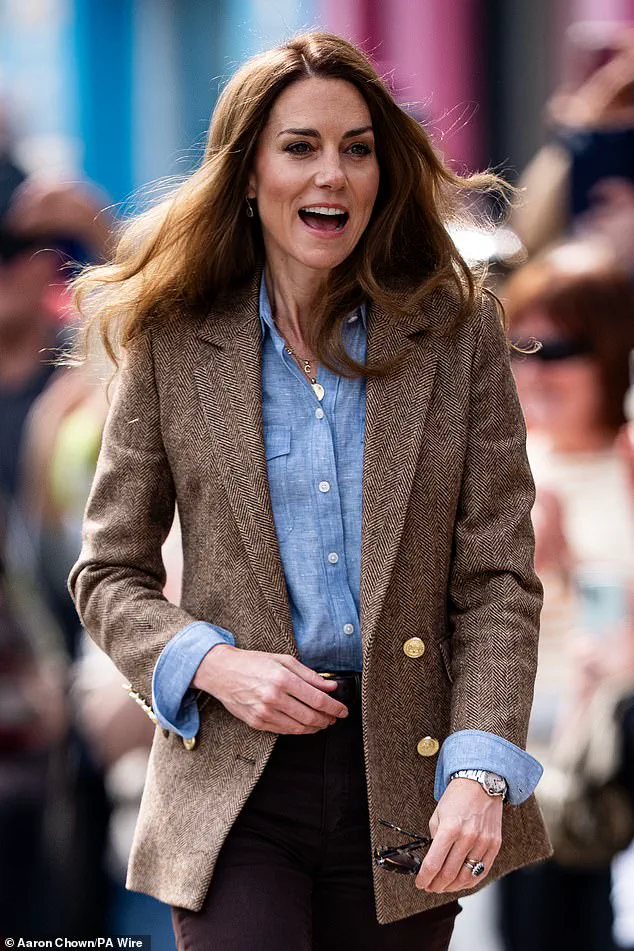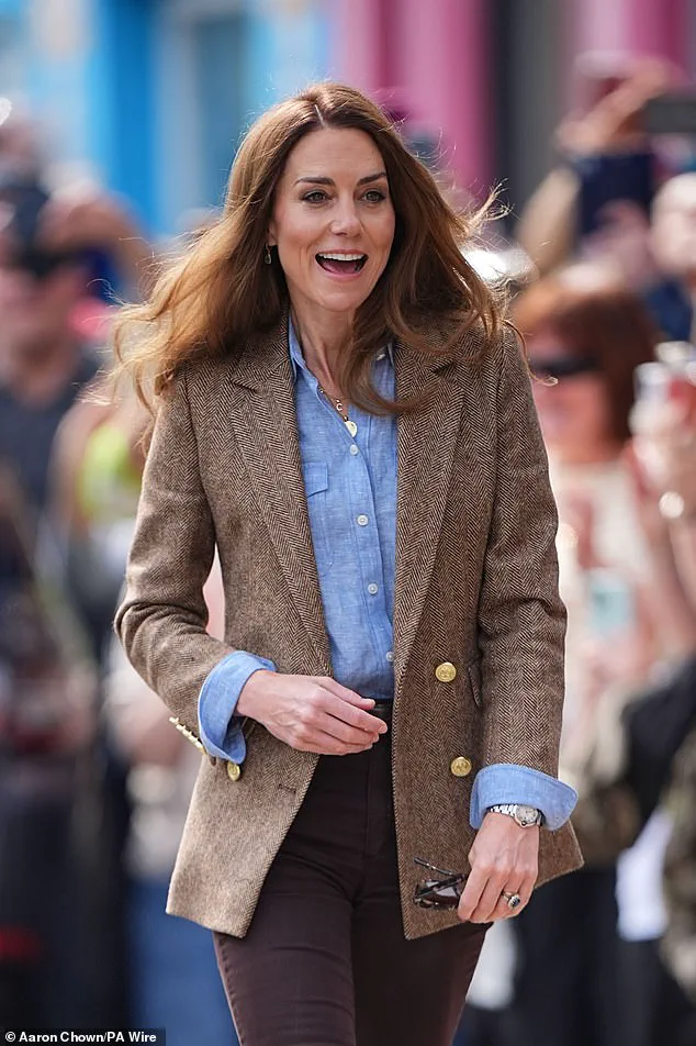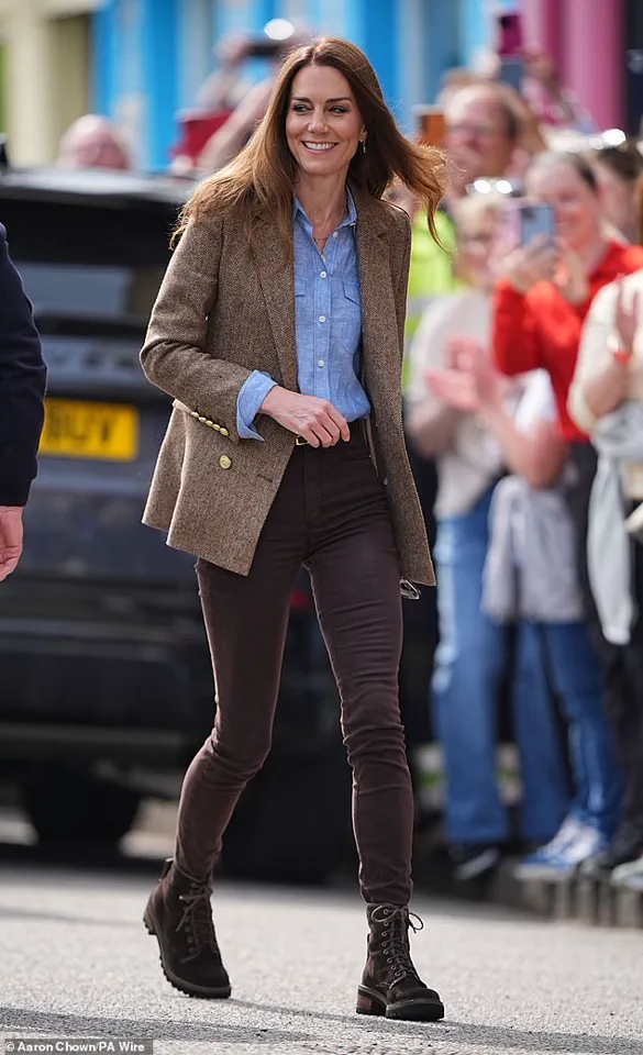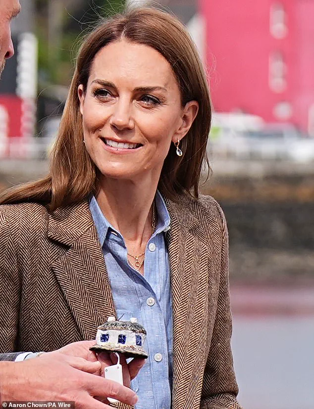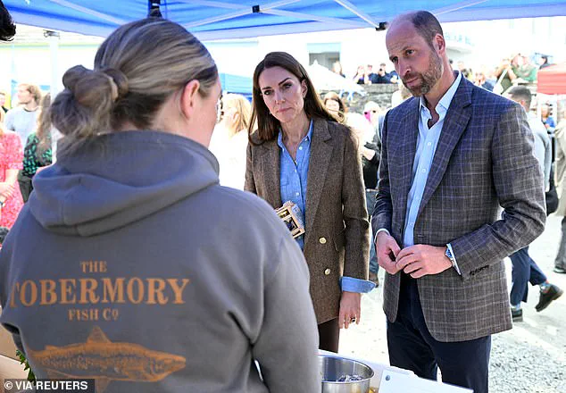 Kate’s visit to the Isle of Mull was marked by her high spirits as she joined William for a visit to an artisan market in Tobermory.