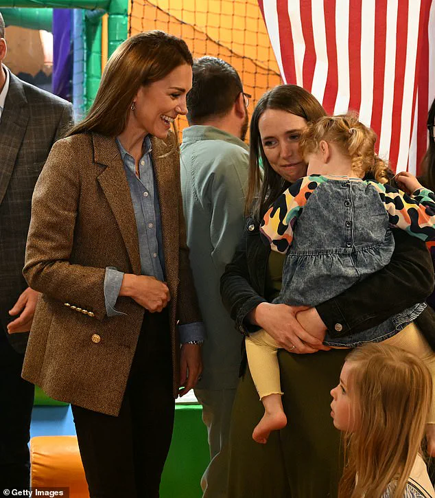 Kate, who is sometimes called the ‘children’s princess’ due to her passion for the early years, couldn’t stop smiling as she chatted with one little girl and her mother.