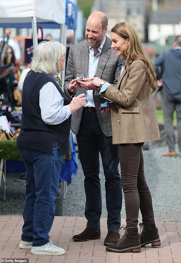 The couple also spent time in a small charity clothes shop, with Kate pausing to ask about it on her way out of Tobermory’s artisan market.