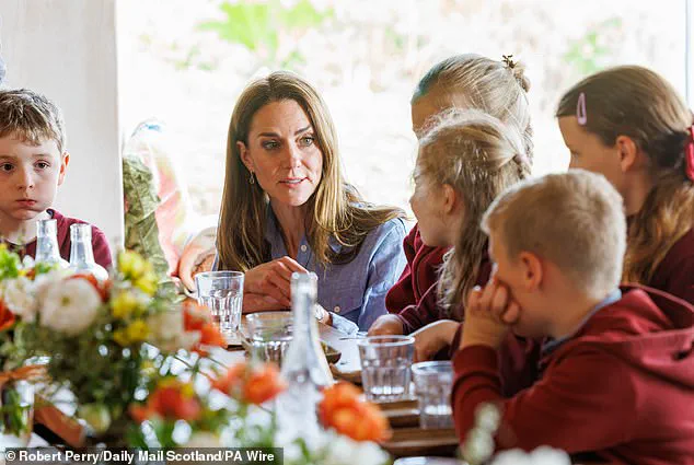Kate also showed off her artistic side when she and William were invited to paint flowers on a mural inside the newly-renovated soft play area at Aros Hall, which is part of an initiative supported by their Royal Foundation.
