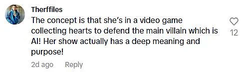 One supporter noted: ‘The concept is that she’s in a video game collecting hearts to defend the main villain which is AI!