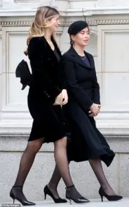 Lady Amelia and Lady Marina, both dressed in black, arrived at the cathedral with solemn expressions, their grief palpable as they joined other family members in mourning.