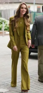The Princess of Wales made a striking sartorial statement during her visit to Home-Start in Oxford, choosing a chartreuse green suit from Victoria Beckham’s latest collection.