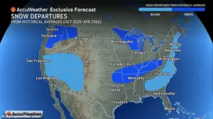 Some regions are expected to experience significantly less snowfall than last year, while the Northeast faces a different challenge: the potential for powerful nor’easters to wreak havoc along the East Coast.
