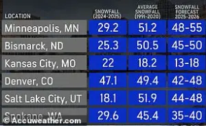 However, this winter, AccuWeather forecasts a significantly milder snowfall, predicting between 17 and 21 inches for the city.