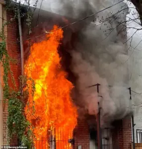 ‘We lived in a row house and the house next to us was a total loss,’ Johnson explained in a later interview with a conservative outlet. ‘Both their dogs were burned alive in the arson.’ His voice cracked as he described the aftermath. ‘Our home was rendered completely uninhabitable due to damage from the fire.