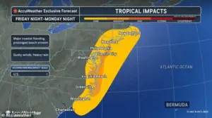 This extended period of exposure to strong winds and heavy rainfall could lead to widespread damage, especially in low-lying communities that have historically struggled with flooding during tropical storms or nor’easters.