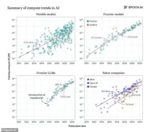 Leading AI models, such as those developed by OpenAI and other pioneers, have demonstrated exponential growth in computational power, doubling roughly every seven months.