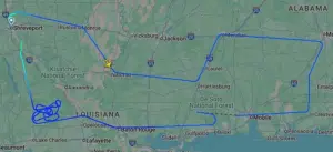 Flight tracking data also revealed another bomber mission on October 8, which followed a different route, heading east into Mississippi before returning to Shreveport.