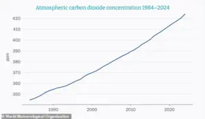 This rapid increase is intensifying the greenhouse effect, which is now trapping more heat in the atmosphere than the planet can naturally dissipate.