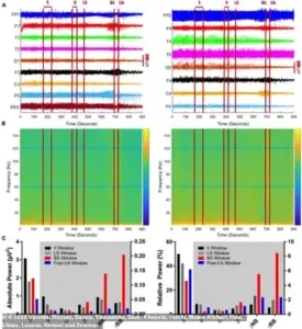 Zemmar suggested that the gamma-wave surge could be part of a broader sequence of neurological events, rather than a sudden shutdown. ‘The brain may be orchestrating a process,’ he said, ‘one that prepares the individual for what comes next, whether that’s biological cessation or something else entirely.’