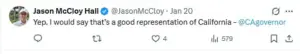 I would say that’s a good representation of California,’ tagging Governor Gavin Newsom.