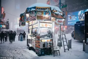 On the streets, hundreds of vehicles were stranded, with bystanders pulling cars from the snow near Times Square. ‘This is not a time for heroics,’ said Governor Kathy Hochul, who had mobilized National Guard troops to assist with emergency response efforts.