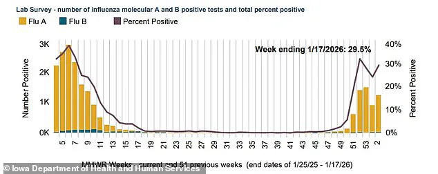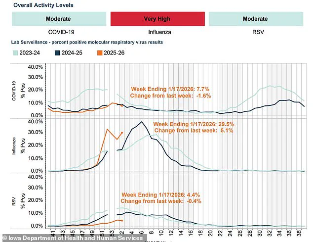 The convergence of multiple respiratory viruses has complicated the health landscape, with wastewater data from the CDC indicating that Covid activity remains ‘very high’ in Iowa, far exceeding the ‘moderate’ levels observed nationwide.