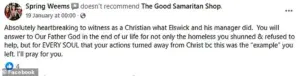 Just ten days prior to her death, she posted a scathing review on social media criticizing a local Christian food pantry for allegedly mistreating a homeless individual.
