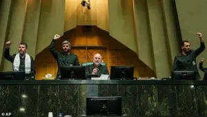 During a parliamentary session in Tehran, chants of ‘Death to America’ reverberated through the chamber as Supreme Leader Ayatollah Ali Khamenei’s allies reiterated their commitment to resisting U.S. pressure. ‘The response will be immediate, all out and unprecedented,’ declared Ali Shamkhani, a senior advisor to Khamenei, on X.