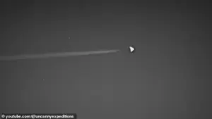 The recent flights have drawn renewed attention from UFO researchers and conspiracy theorists, who have long argued that Area 51 is the site of experiments involving extraterrestrial technology. In 1989, Bob Lazar, a self-proclaimed former scientist, claimed he worked at a secret site near Groom Lake known as ‘S-4,’ where he allegedly studied alien spacecraft and technology recovered by the military. Despite the sensational nature of his claims, Lazar’s credentials and employment history have never been independently verified. More recently, YouTube explorer Anders Otteson captured video of a triangle-shaped aircraft flying over Area 51’s restricted airspace, a sighting that has been cited by UFO enthusiasts as further evidence of classified operations.