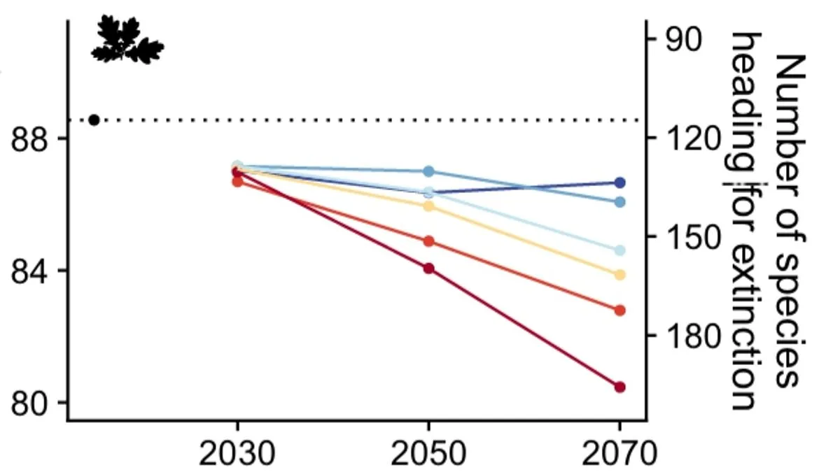 The study, published in *Nature Communications*, analyzed how over 1,000 native species might be affected by climate change and land-use shifts. It found that extinction risks rise under all scenarios, but the worst outcomes occur when fossil fuel burning remains high, housing expansion accelerates, environmental regulations weaken, and agriculture intensifies. "Some species that have been part of our landscapes for centuries are now at risk of being lost," Dr. Cooke explained. "This will negatively affect local habitats and ecological functions, from soil health to pollination, with knock-on effects for wildlife and people."