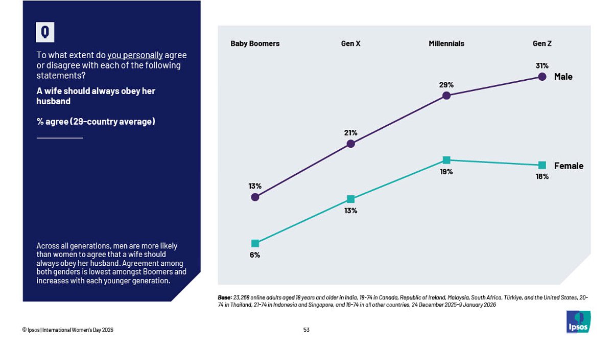 The study also uncovered a paradox in Gen Z attitudes. While 31% of Gen Z men supported the idea of a wife obeying her husband, the same generation was the most likely to view women with successful careers as more attractive. This duality has been described by Kelly Beaver, CEO of Ipsos in the UK and Ireland, as a 'great re-negotiation' of gender roles. She noted that Gen Z's conflicting beliefs—supporting women's independence in one context while advocating for traditional domestic roles in another—highlight the need for deeper exploration of cultural and economic factors. Are these views a product of social media's influence, or do they reflect broader societal anxieties about identity and masculinity in an increasingly fluid world?