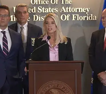 Pam Bondi stood before a packed press conference on Friday, her voice trembling with a mix of fury and resolve...